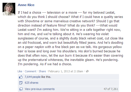 March 25, 2014 iwantmyiwtv Old post from Anne Rice’s FB page but still… it’s like a little glimpse of Lestat ♥ Also, what is Lestat doodling? Hmmmm? Source: facebook.com Share this: Click to share on X (Opens in new window) X Click to share on Facebook (Opens in new window) Facebook Like Loading... Related