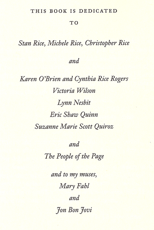Dedication page, for your information. Wonder how Bon Jovi feels about his influence. Published October 29, 2014 at 538 × 806 in ← Previous Next → Dedication page, for your information. Wonder how Bon Jovi feels about his influence.