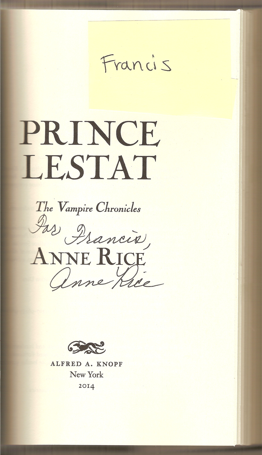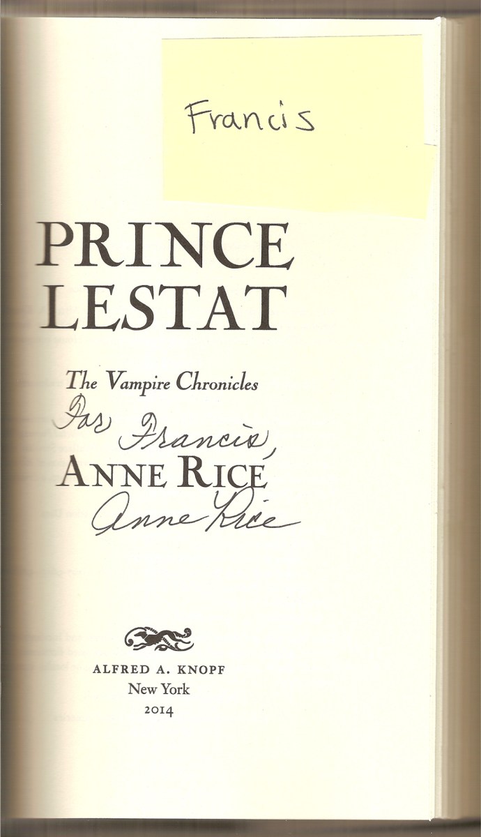 Francis Durand’s signed copy of Prince Lestat will ship to him soon! Published October 29, 2014 at 1104 × 1920 in Next → Francis Durand’s signed copy of Prince Lestat will ship to him soon!
