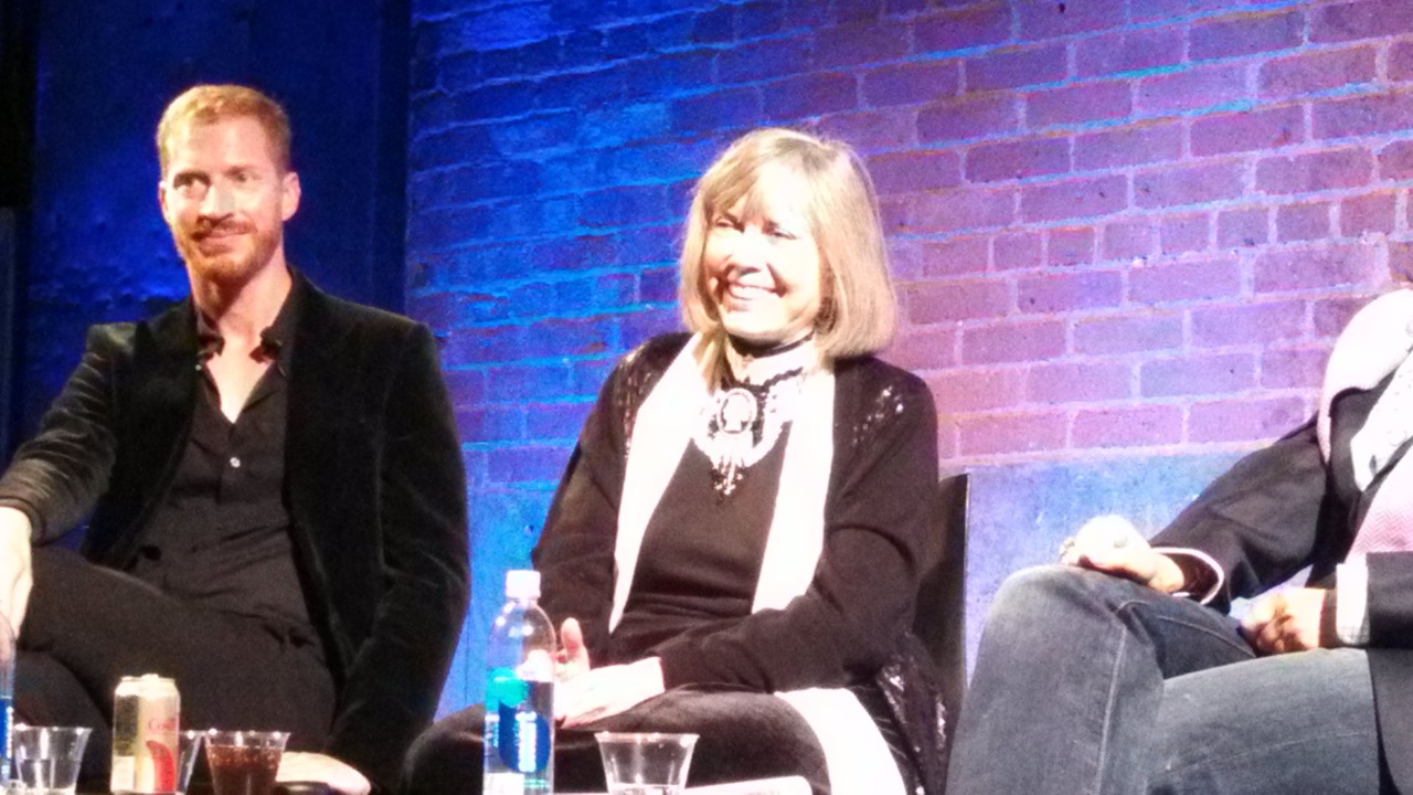 This was a cool setting, a big empty gallery. OF COURSE AR wore a big cameo. OF COURSE. This is her laughing after admitting she always has FB open, she is addicted to it.