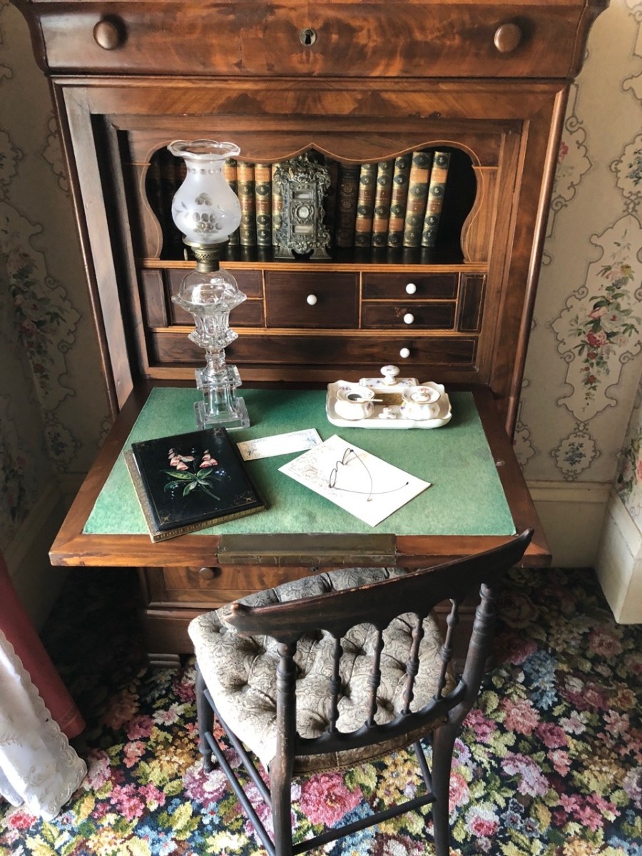 the desk in Louis’ room – it was next to a floor length window which opened up to the balcony that he shared with Claudia (they could open the window and walk out onto the balcony together)