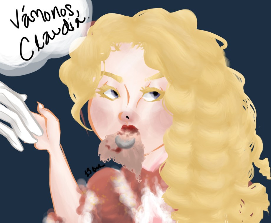 @claudia-lilvampire requested of me something from her list of fan arts. I choose: “Claudia with a baby pacifier so she doesn’t bite everyone on the street,” and wrote the caption in Spanish bc I understand that is the requestee’s preferred language c; It simply says, “Let’s go, Claudia.”