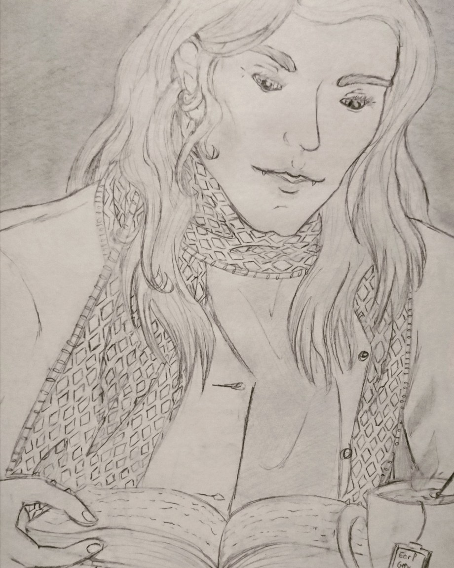 On other notes my cellphone died and I was listening to “The Vampire Lestat” on it, so I will have to “actually” read the book ( I own this one, but is just that i love to listen audiobooks while I am drawing)