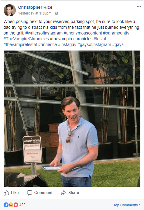 Christopher Rice at Anonymous Content to talk VC TV series adaptation! (10/10/2017)