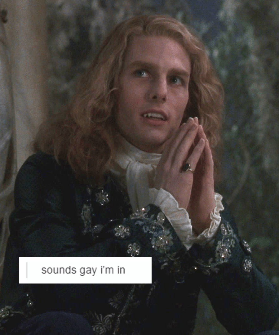 – Louis is all *shitshitshit how can i answer her without lying… “I’m only gay for Lestat…” No, that sounds weird… “We’re only gay sometimes…. like for 20 minutes at a time…” No, sometimes it lasts longer… so conflicted… If I wait long enough maybe Lestat will have a better answer.
